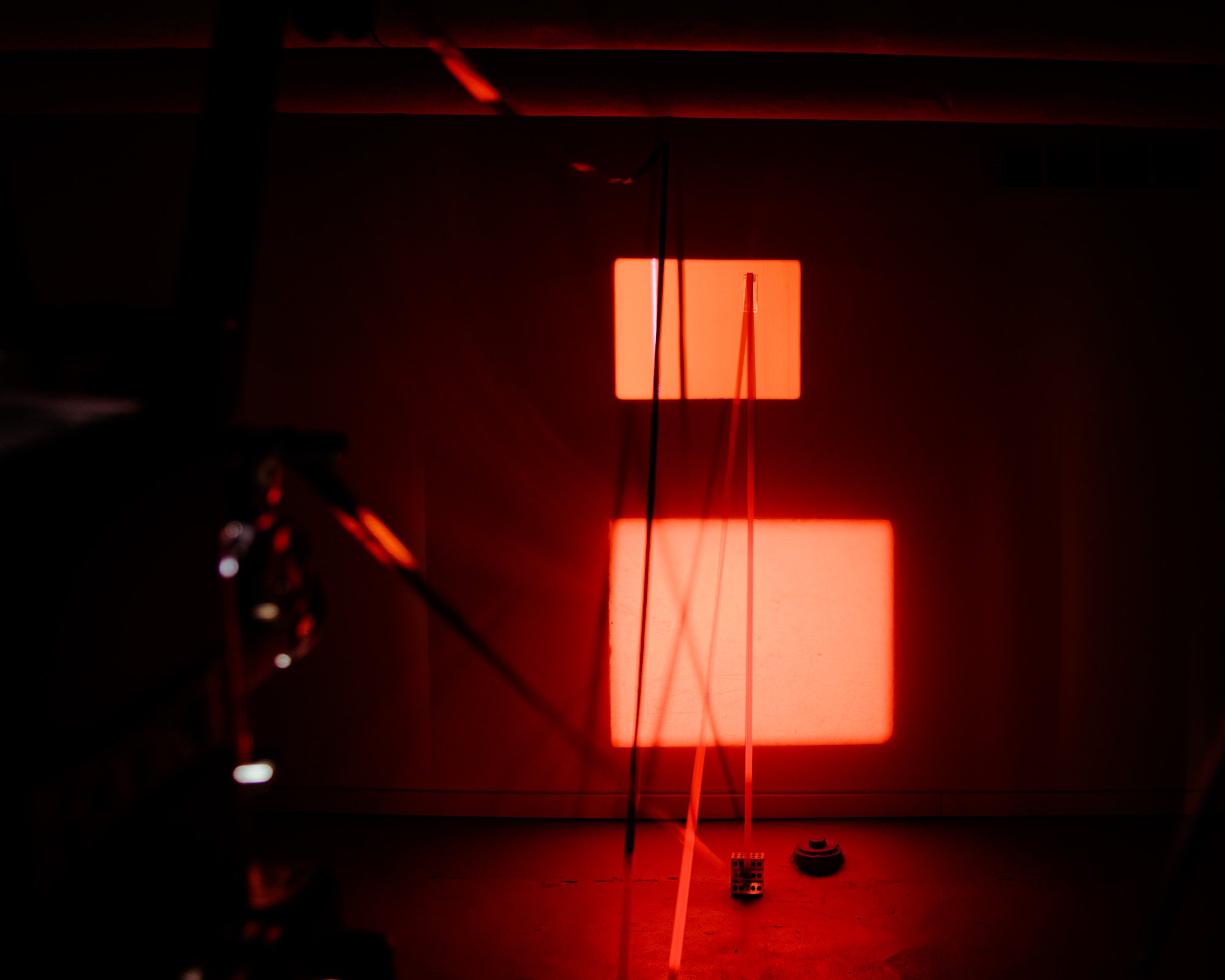 Dada’s Daughter is an ongoing expanded-cinema performance with 16mm film projections and a live score using objects of illusionary optics and industrial scrap. Abstractions of light and pattern reintroduce photographic practices of early 20th century Dada films by way of darkroom techniques and improvisation. Spliced in between photograms and negative images, sections of clear film leader cue a live performance activating the remote objects photographed on celluloid through the immediacy of the film projector’s beam. When placed in front of the projector these objects create tactile optical images; impressions of form, shape and pattern that reenact the process of capturing images on celluloid.